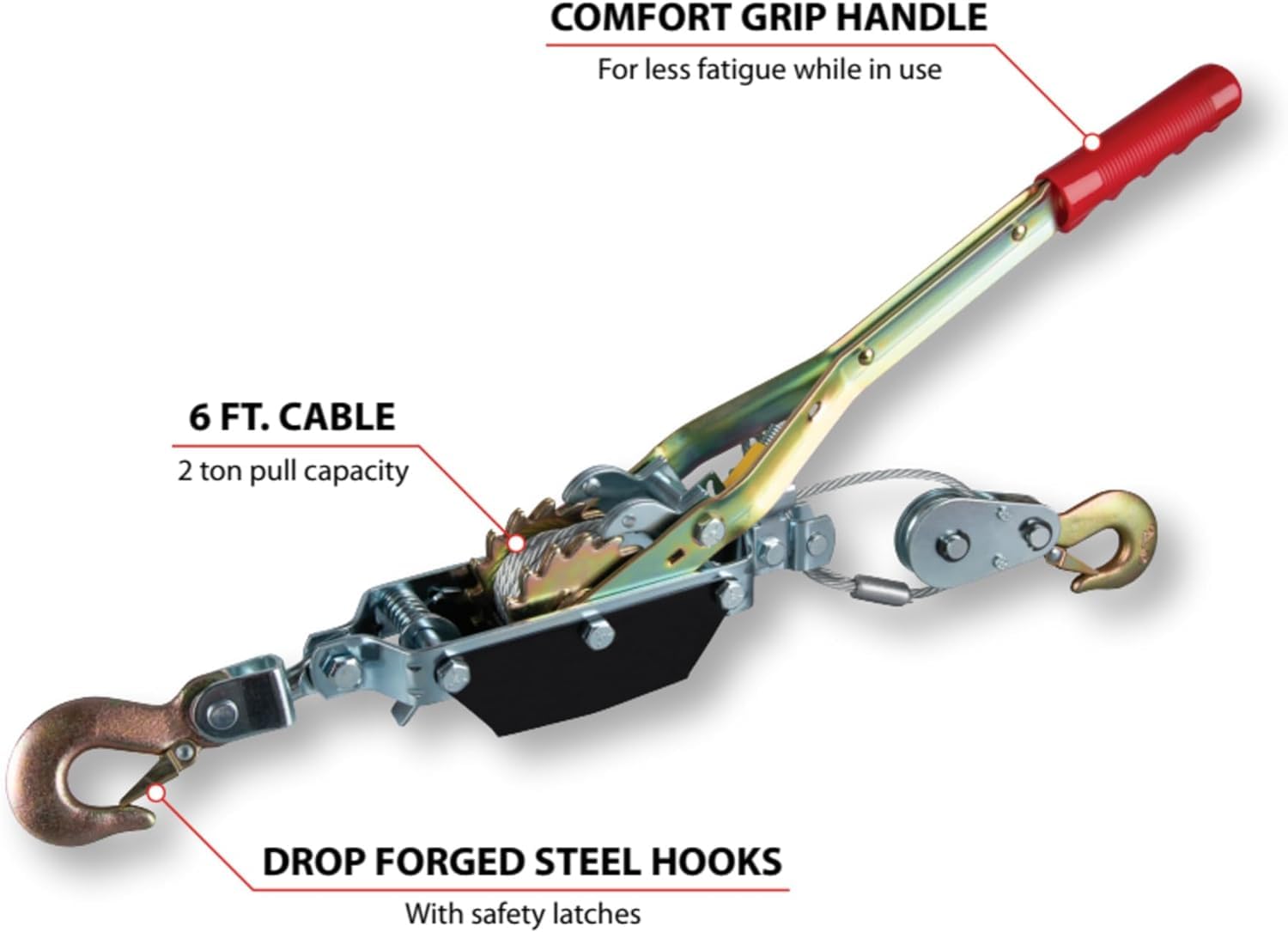 - Heavy duty 2 ton come along hand winch cable puller delivers serious pulling power for construction, home, farms and automotive use.